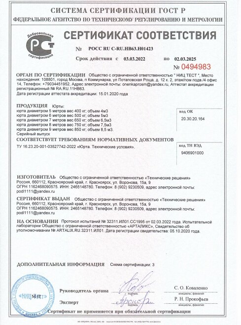 Качество наших юрт подтверждено