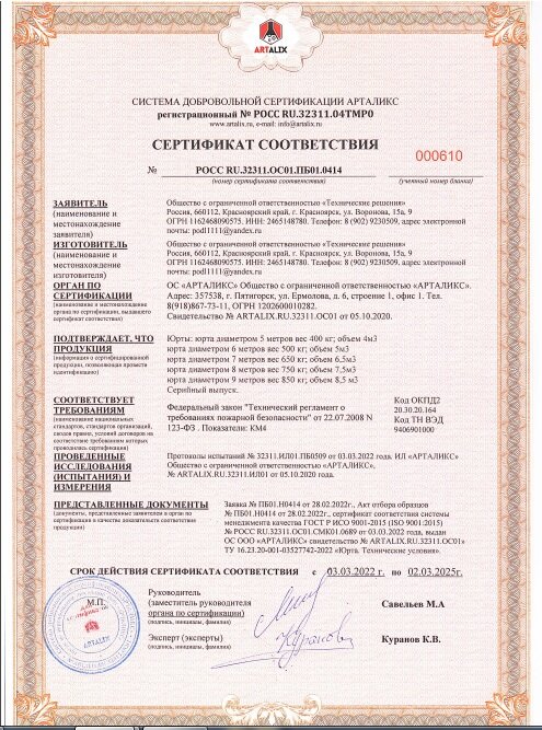 Сертификат пожарной безопасности​